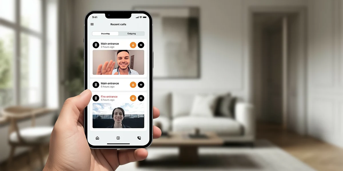 Принимайте вызовы, общайтесь с посетителями и открывайте дверь через приложение на смартфоне или планшете.